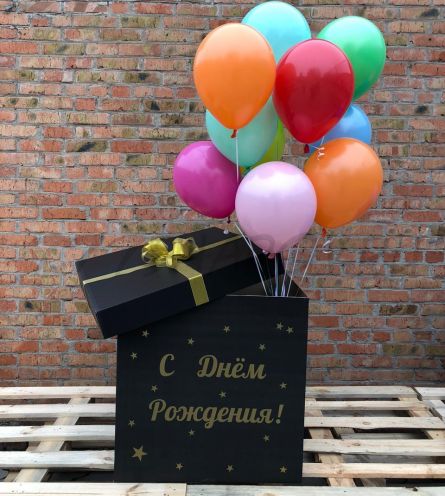 Эффектная большущая подарочная коробка с шарами внутри несомненно вызовет восторг.