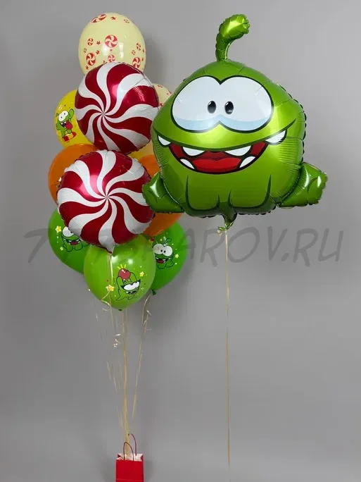 Забавный и добрый герой мультфильма "Приключения Ам Няма". Большой любитель леденцов. Такой яркий, красочный, букет шаров обязательно понравиться Вашему малышу. А мы с удовольствием, его надуем и доставим прямо Вам домой к нужной дате и времени.