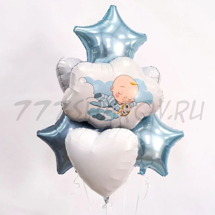 БУКЕТ ВОЗДУШНЫХ ШАРОВ "МАЛЫШ (-КА) НА ОБЛАЧКЕ" С ГЕЛИЕМ.