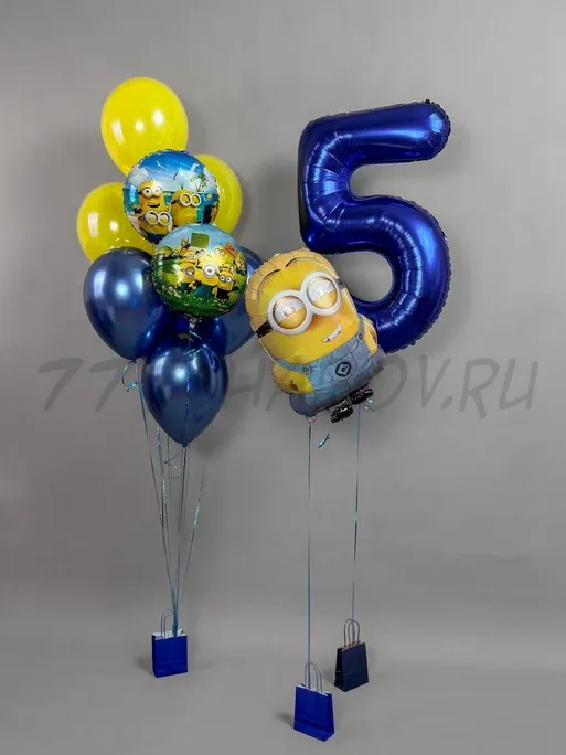 БУКЕТ ШАРОВ "МИНЬОНЫ" С ГЕЛИЕМ.