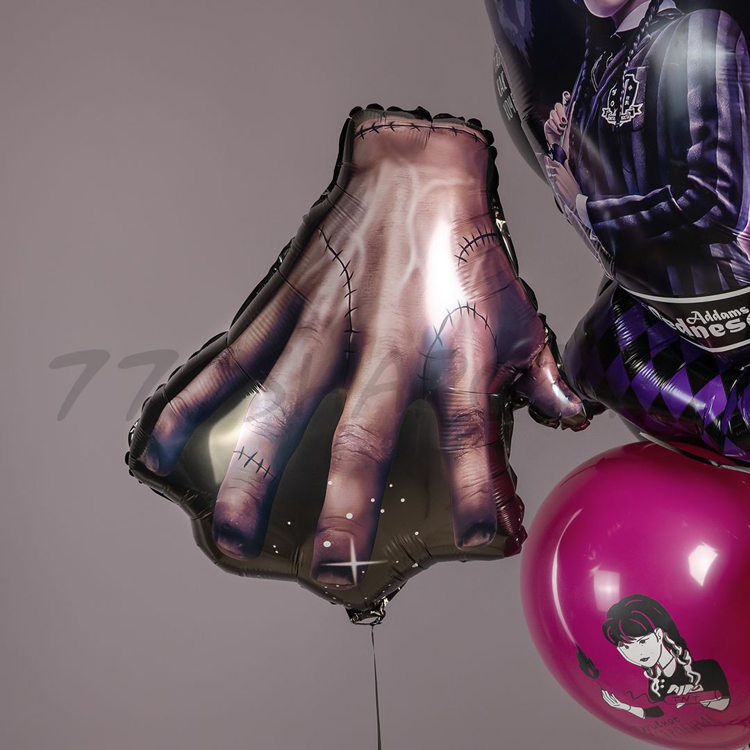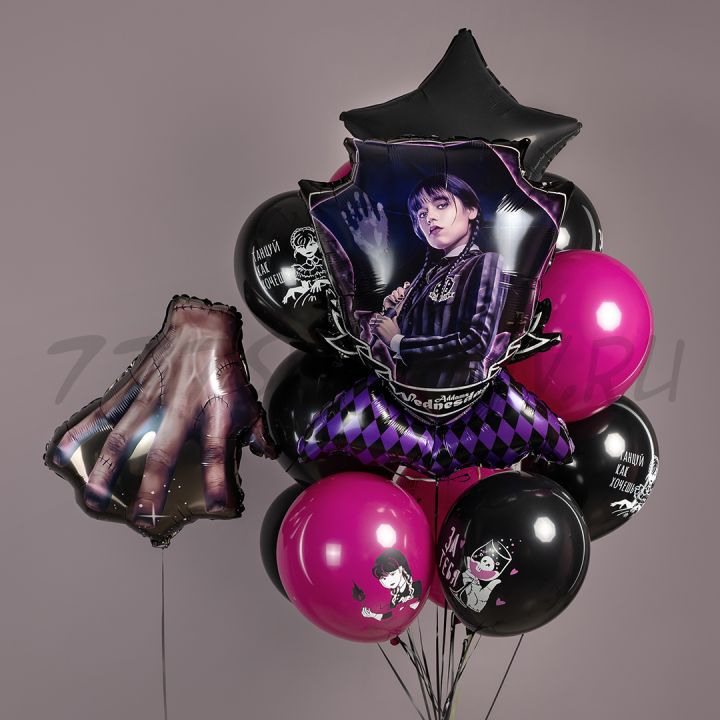 БУКЕТ ВОЗДУШНЫХ ШАРОВ "МРАЧНАЯ СТОРИ" УЭНСДЕЙ С ГЕЛИЕМ.