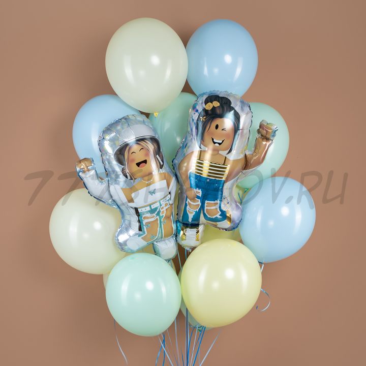 БУКЕТ ШАРОВ "РОБЛОКС" БЛОКИ ДЕВОЧКИ С ГЕЛИЕМ.