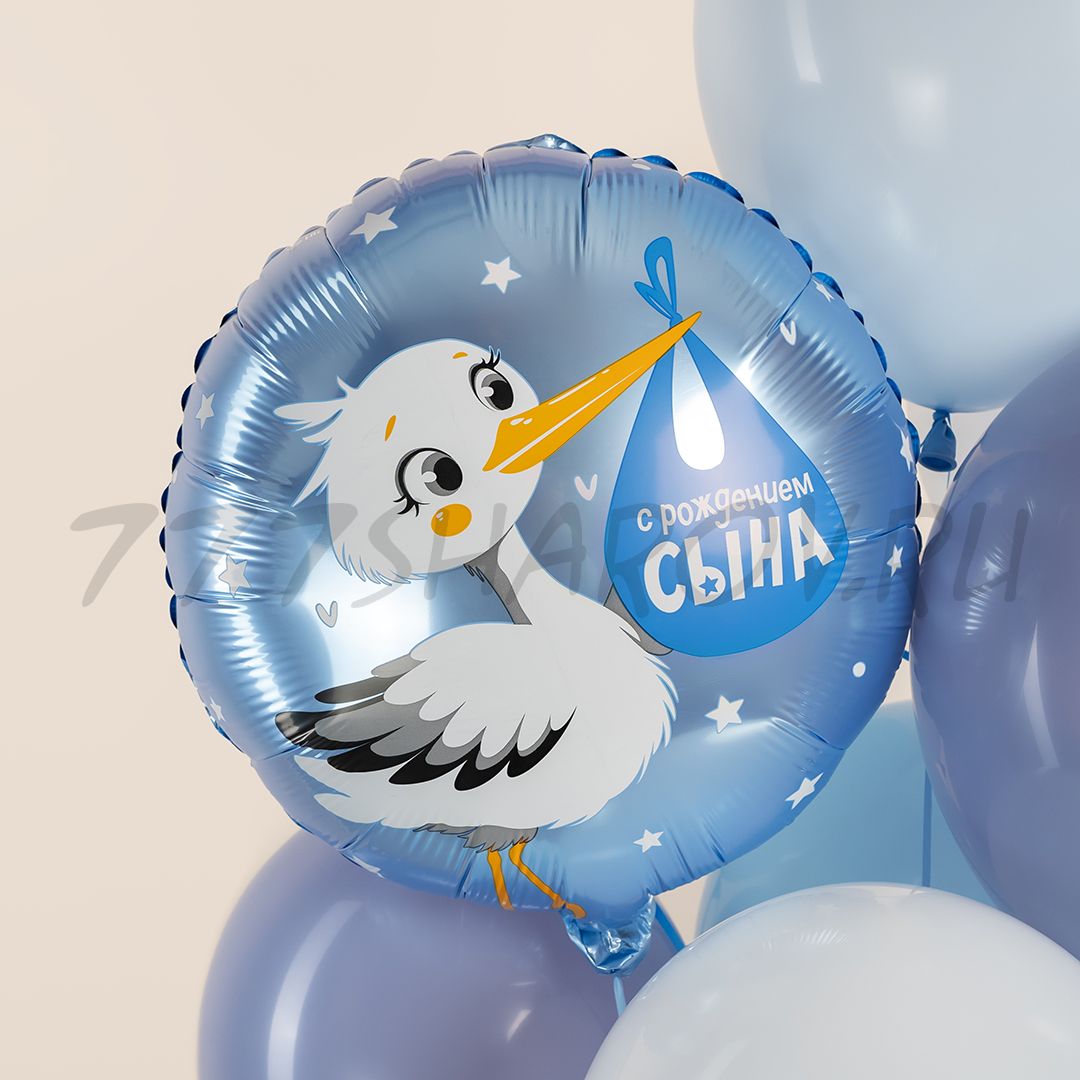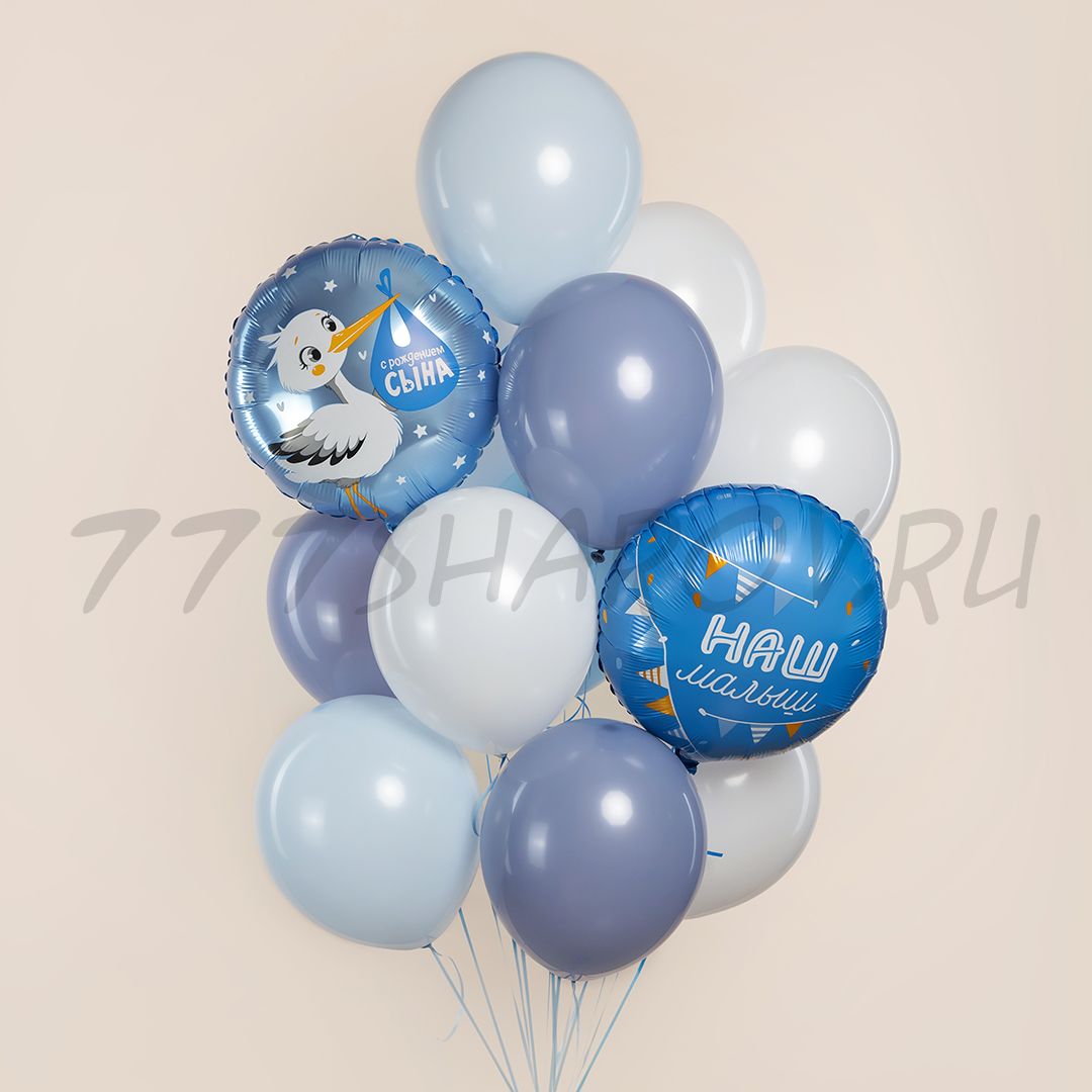БУКЕТ ВОЗДУШНЫХ ШАРОВ "С РОЖДЕНИЕМ СЫНА" С ГЕЛИЕМ