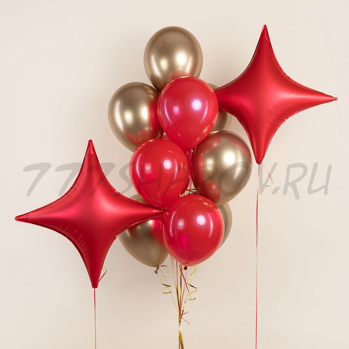 БУКЕТ ВОЗДУШНЫХ ШАРОВ "СИРИУС" КРАСНЫЙ САТИН С ГЕЛИЕМ.