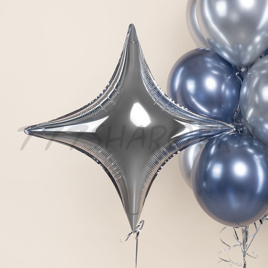 БУКЕТ ВОЗДУШНЫХ ШАРОВ "СИРИУС" СЕРЕБРО С ГЕЛИЕМ.