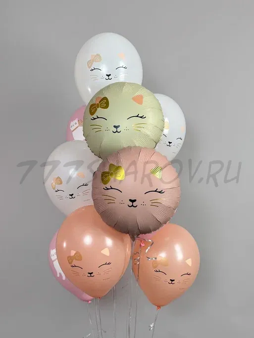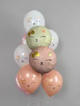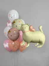 Котиков любят все! А фольгированные фигуры в виде кошечки с бантиком в модных сатиновых тонах отлично подойдет для оформления дня рождения или другого праздника Вашей маленькой принцессы. Мы же с удовольствием подготовим такой фонтан воздушных шаров с гелием и доставим прямо к Вам домой.