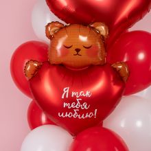 ФОЛЬГИРОВАННАЯ ФИГУРА "МЕДВЕЖОНОК С СЕРДЦЕМ" (30" / 76 СМ.) С ГЕЛИЕМ
