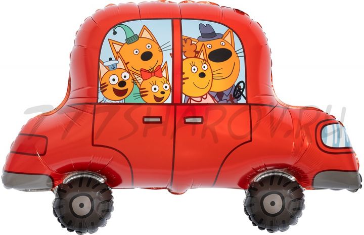 ФОЛЬГИРОВАННАЯ  ФИГУРА "ТРИ КОТА АВТОМОБИЛЬ"  (30" / 76 СМ.)   С ГЕЛИЕМ.
