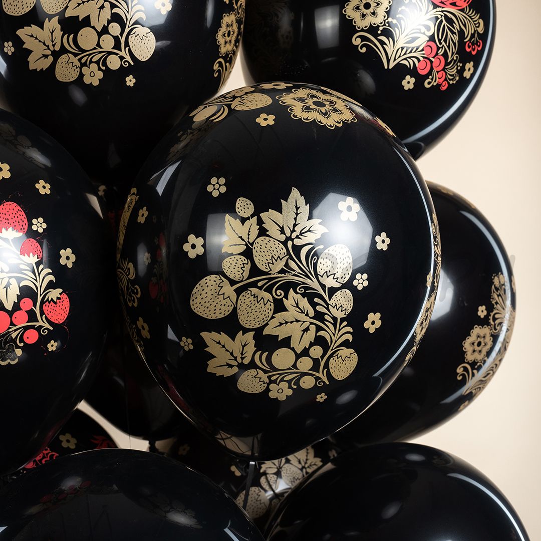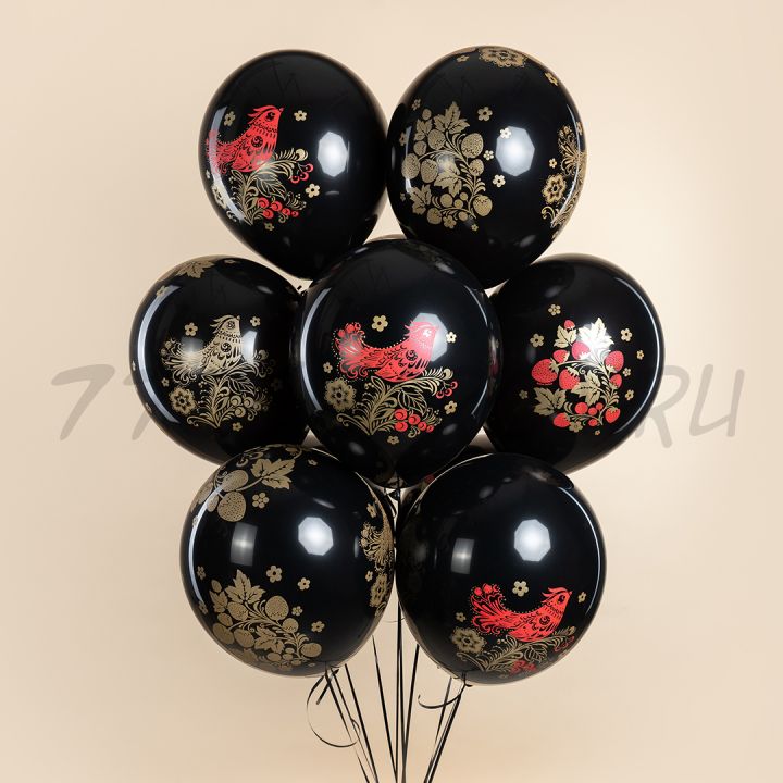ОБЛАКО ЛАТЕКСНЫХ ШАРОВ "ХОХЛОМА" 10 ШТ. С ГЕЛИЕМ