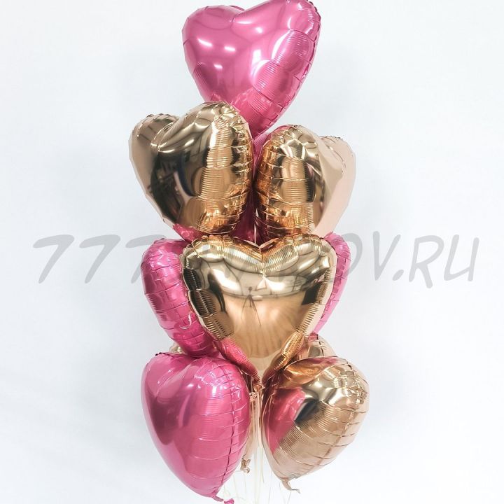 ФОНТАН ИЗ ФОЛЬГИРОВАННЫХ ШАРОВ СЕРДЦЕ 10 ШТ (18"/46 СМ.) С ГЕЛИЕМ
