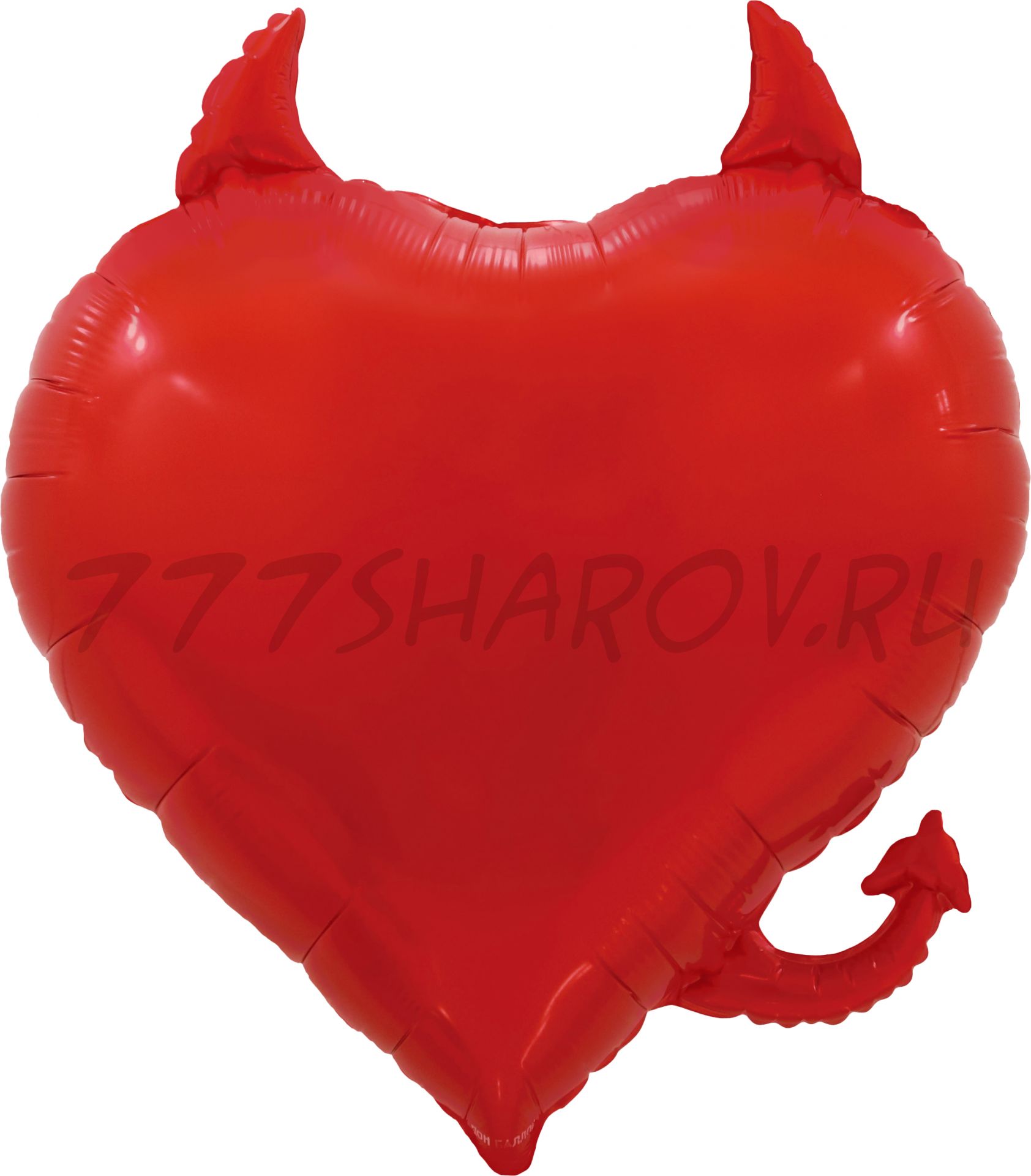 СЕРДЦЕ ФОЛЬГИРОВАННОЕ "ЧЕРТЕНОК" КРАСНОЕ (30" / 76 СМ.) С ГЕЛИЕМ.