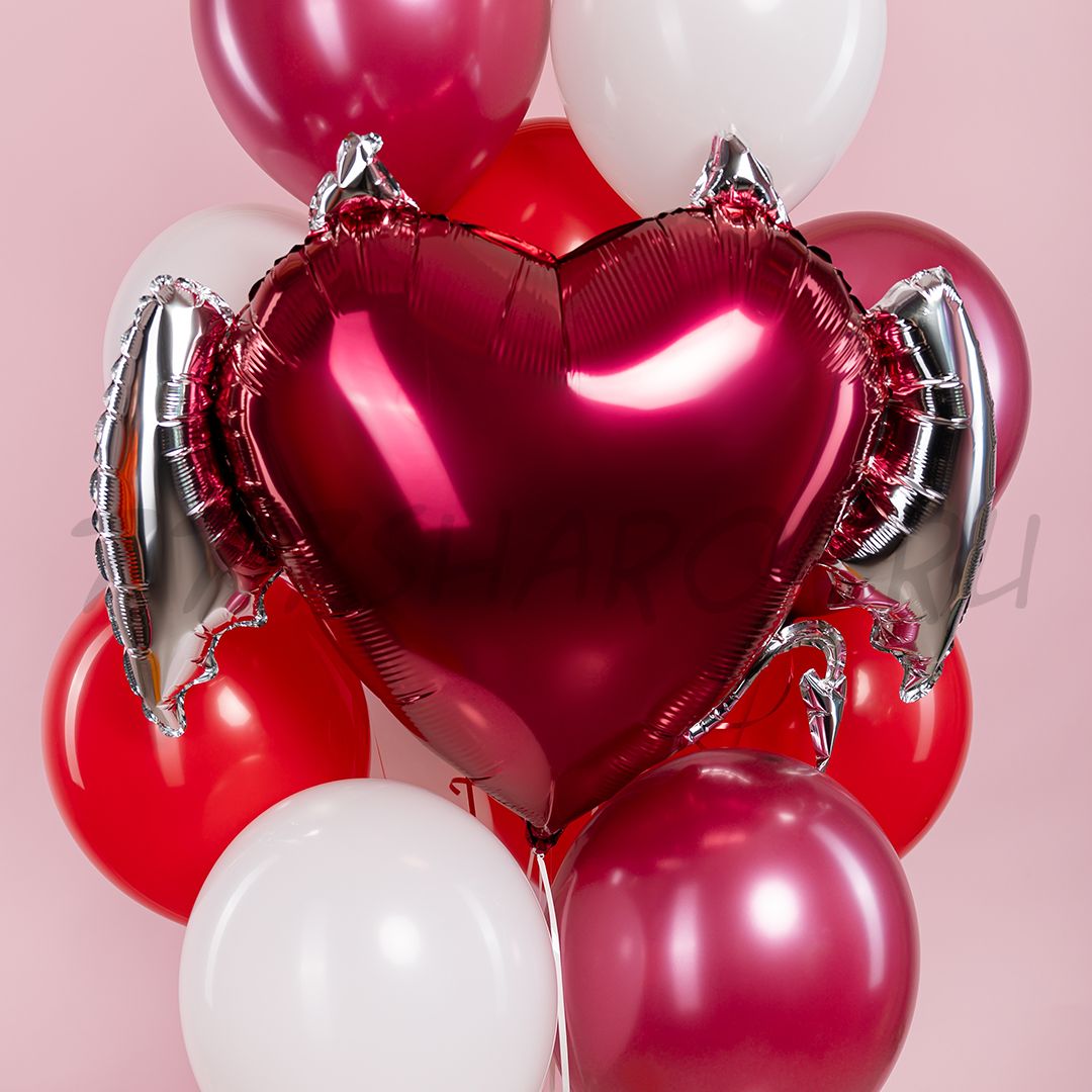 Фолгированный шар в форме сердца с крыльями и рожками. В каждом анегле есть немного от демона)