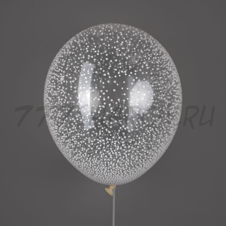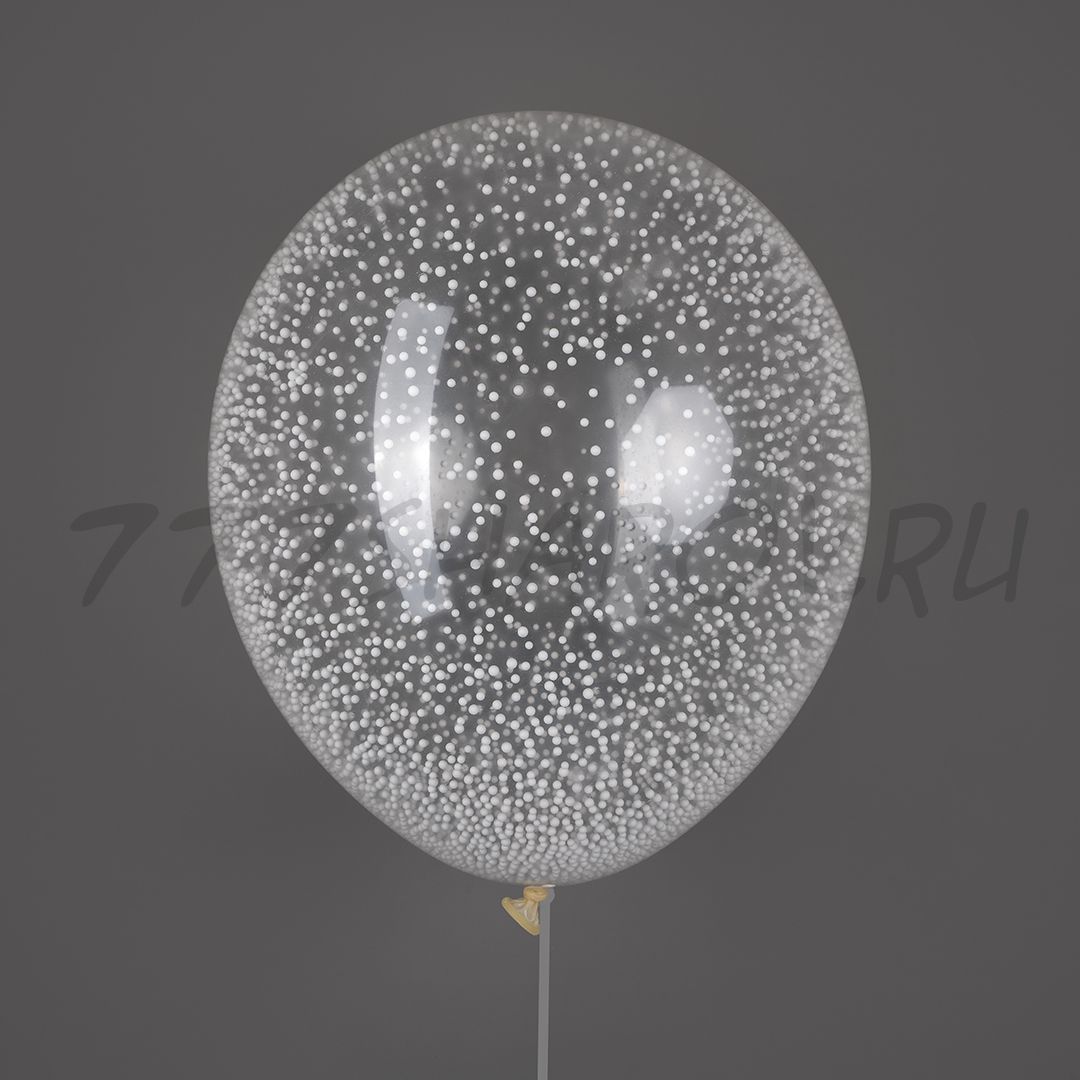 ШАР ПРОЗРАЧНЫЙ "СНЕЖНЫЙ" С КОНФЕТТИ (ШАРИКИ ПЕНОПЛАСТ) 1 ШТ. С ГЕЛИЕМ.
