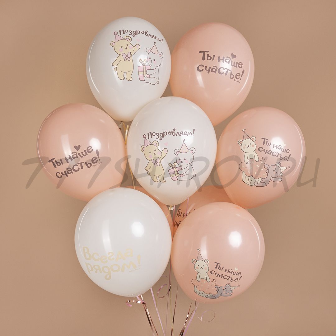 ШАР ЛАТЕКСНЫЙ "ПОЗДРАВЛЯЕМ!" МИЛЫЕ МИШКИ 1 ШТ. С ГЕЛИЕМ.